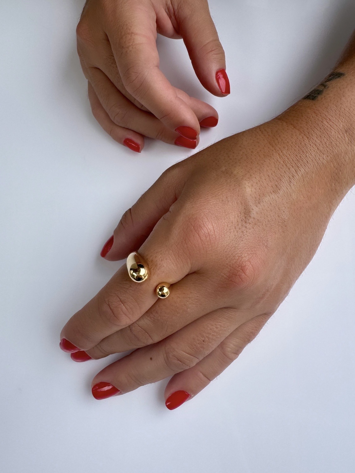 Com design arrojado e formato ajustável, este anel sugere conforto e versatilidade, podendo se adaptar a diferentes tamanhos de dedo. Possui acabamento em duas extremidades arredondadas e volumosas, que conferem modernidade à peça. Um anel versátil e contemporâneo, ideal para compor looks estilosos e sofisticados.
