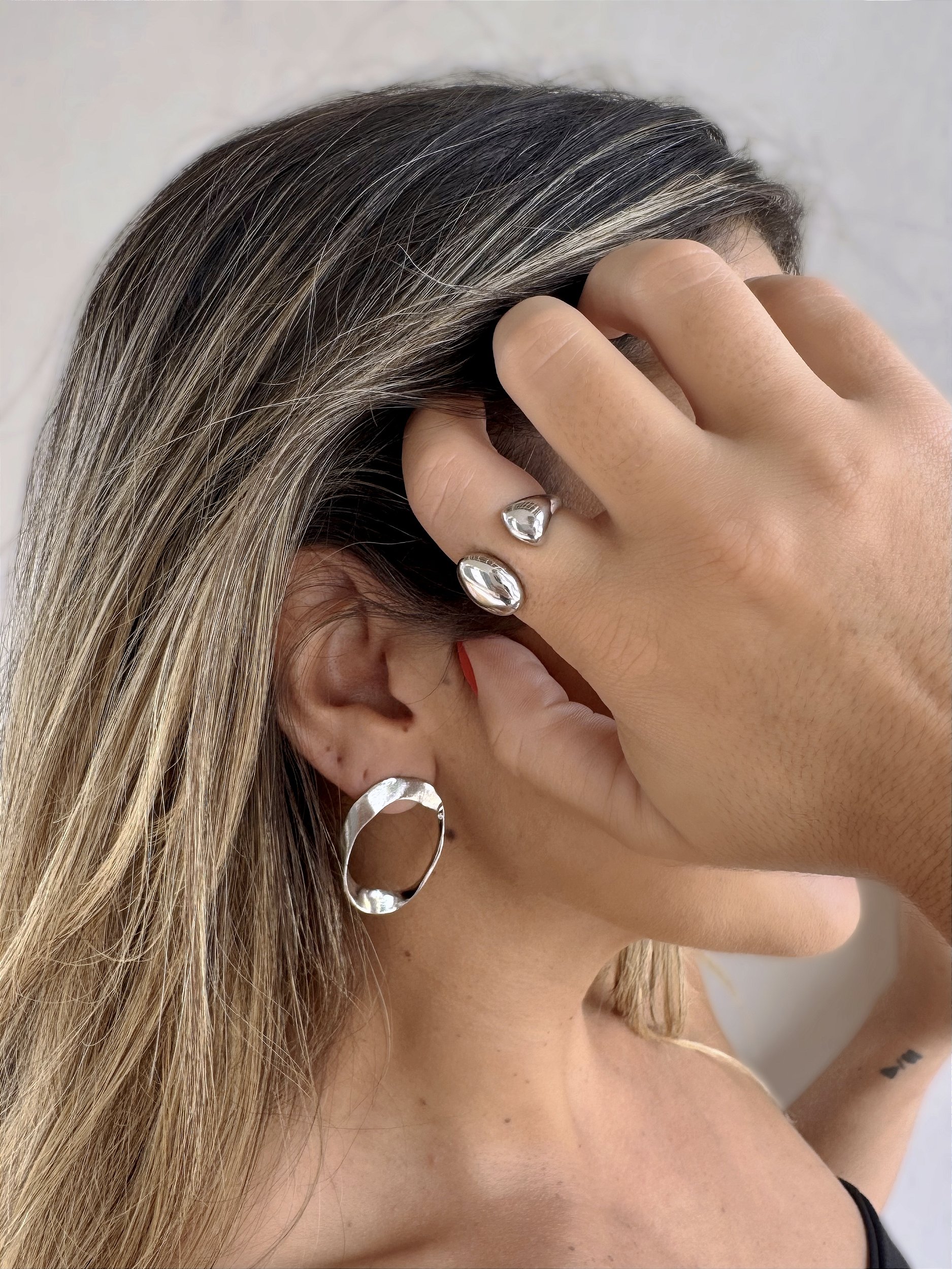 Com design moderno e minimalista e formato ajustável, este anel sugere conforto e versatilidade, podendo se adaptar a diferentes tamanhos de dedo. Possui acabamento em formato oval, que confere modernidade à peça. Um anel versátil e contemporâneo que pode ser usado sozinho para um visual refinado ou combinado com outros acessórios para um look mais ousado.
