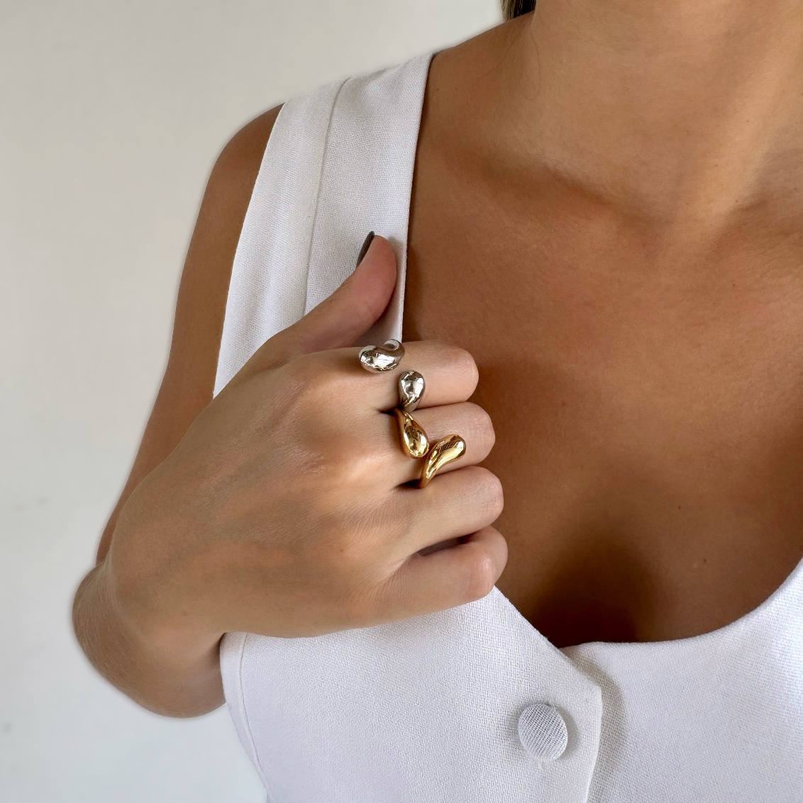 Moderno e irreverente, o Anel Regulável Gotinha agrega estilo e personalidade, marcando presença nas composições.