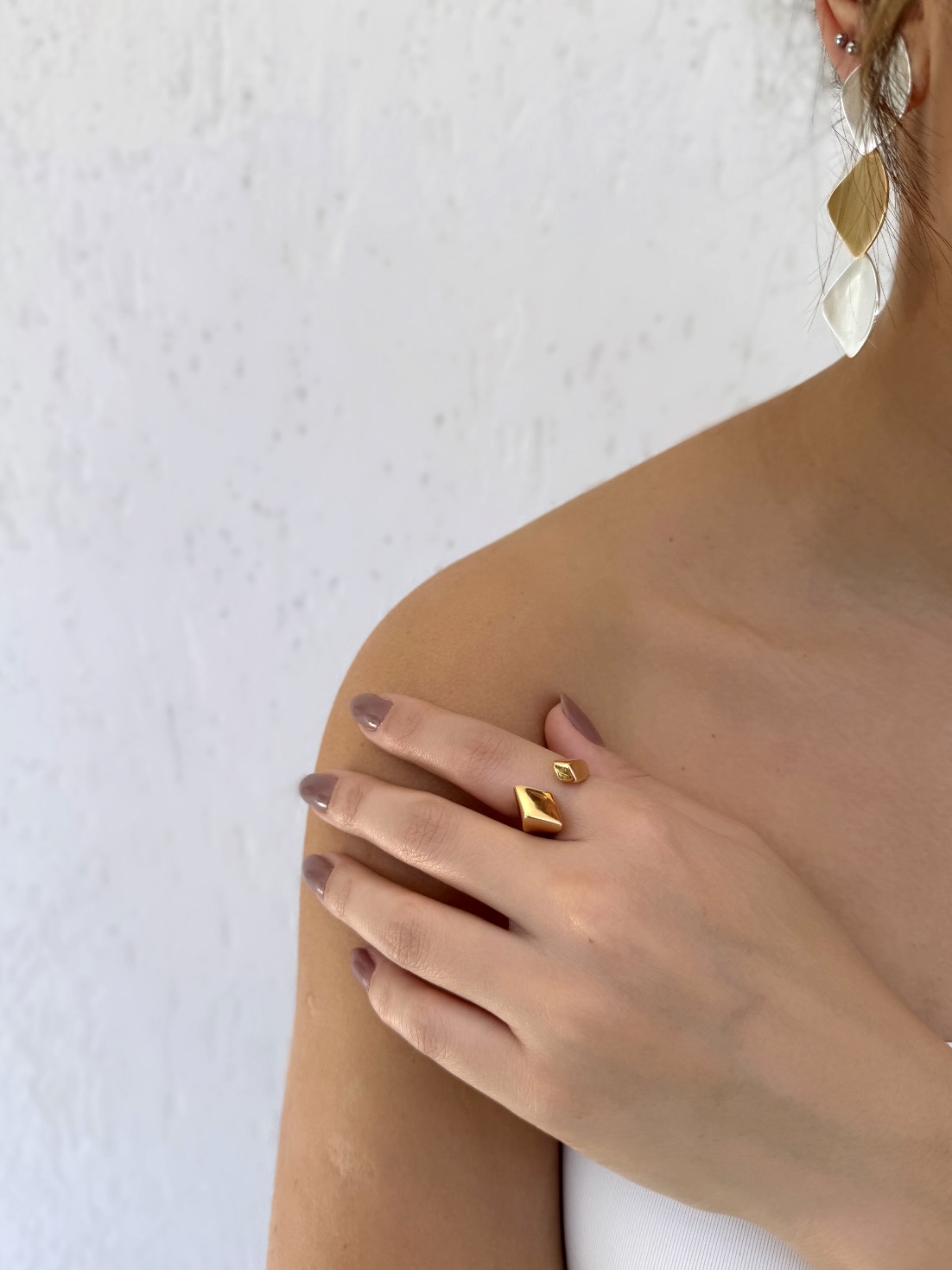 Anel regulável com acabamento em formato de losangos confeccionados em semijoia.