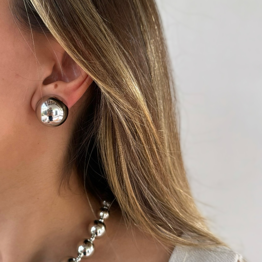 Atemporal e versátil, o brinco esfera em aço é um clássico do seu seguimento, além de ser uma peça leve, vistosa e de uso confortável.