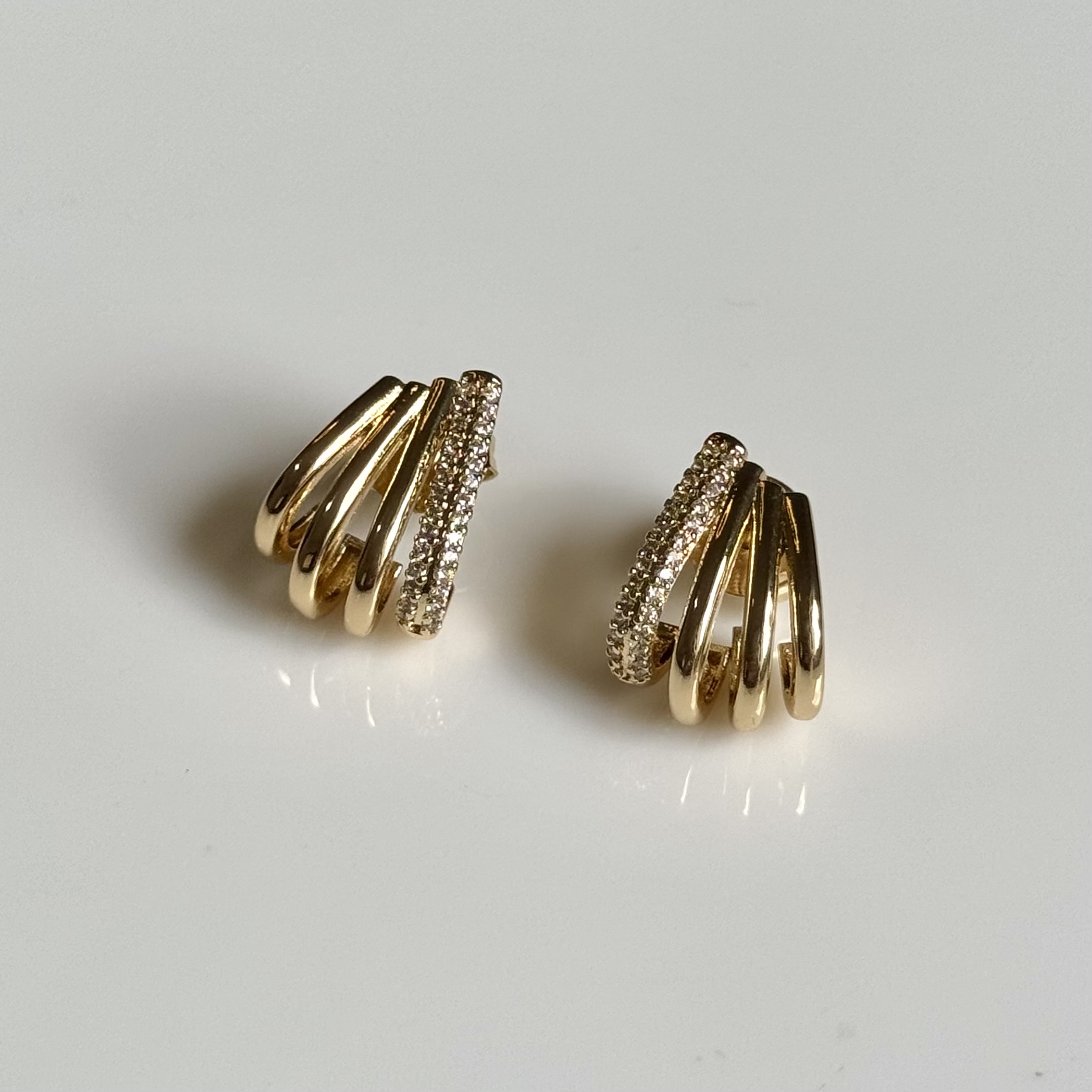 Leve e sofisticado, com design em fio cravejado e fios lisos, esse é um brinco que traz um toque de elegância às composições, abrilhantando a produção.