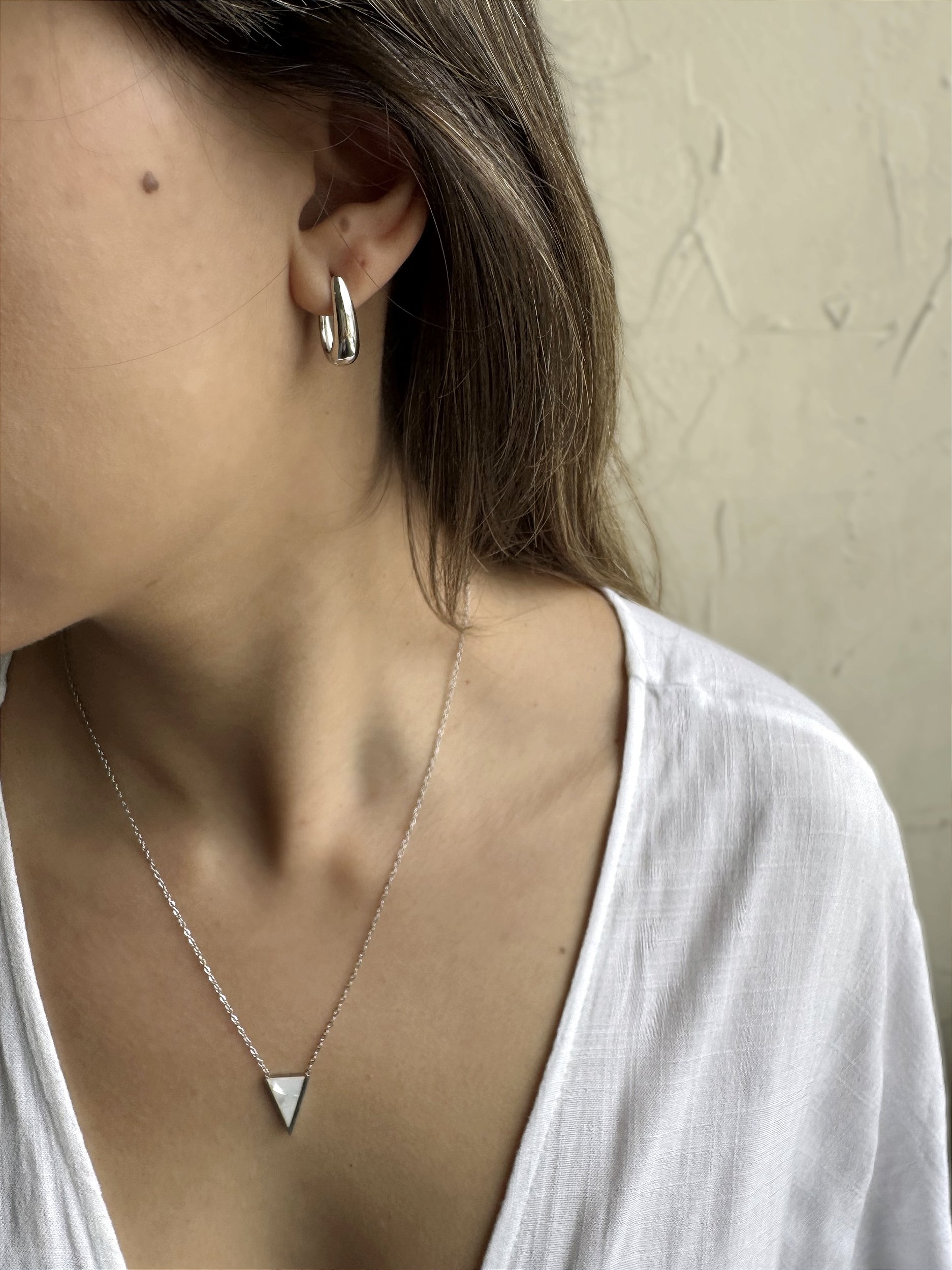 O design minimalista e contemporâneo faz desse colar uma peça versátil, ideal para compor desde looks casuais até produções mais sofisticadas. A geometria do pingente adiciona um toque de personalidade e estilo à composição, sendo perfeito para quem aprecia acessórios com um ar clean e atual.