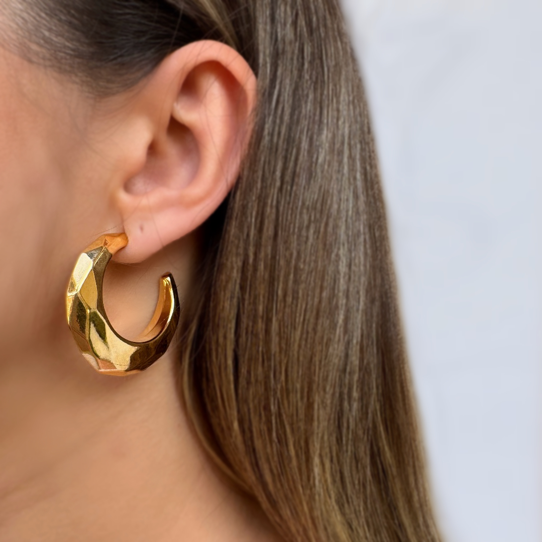 Básica nada básica, a Maxi Argola Detalhada marca presença nas composições, com sua superfície trabalhada em design orgânico, trazendo impacto com a reflexão de luzes e gerando um efeito de maior brilho para o acessório.